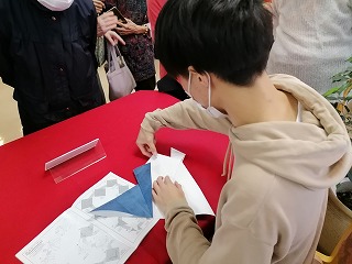 今回の企画にお申込みされていなかった方も噂を聞きつけ、飛び入り参加される方もいて、大盛況の『京都大学折り紙サークル いまじろ~』の作品展でした。