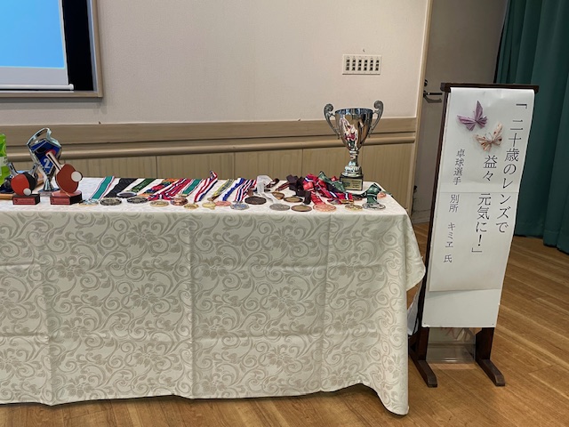 先日秋晴れの気持ち良い中、卓球選手 別所キミヱさんをお迎えし『二十歳のレンズで益々元気に!』というタイトルでご講話をいただきました。