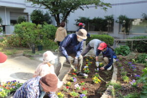 県農生と中庭花壇の植え替え